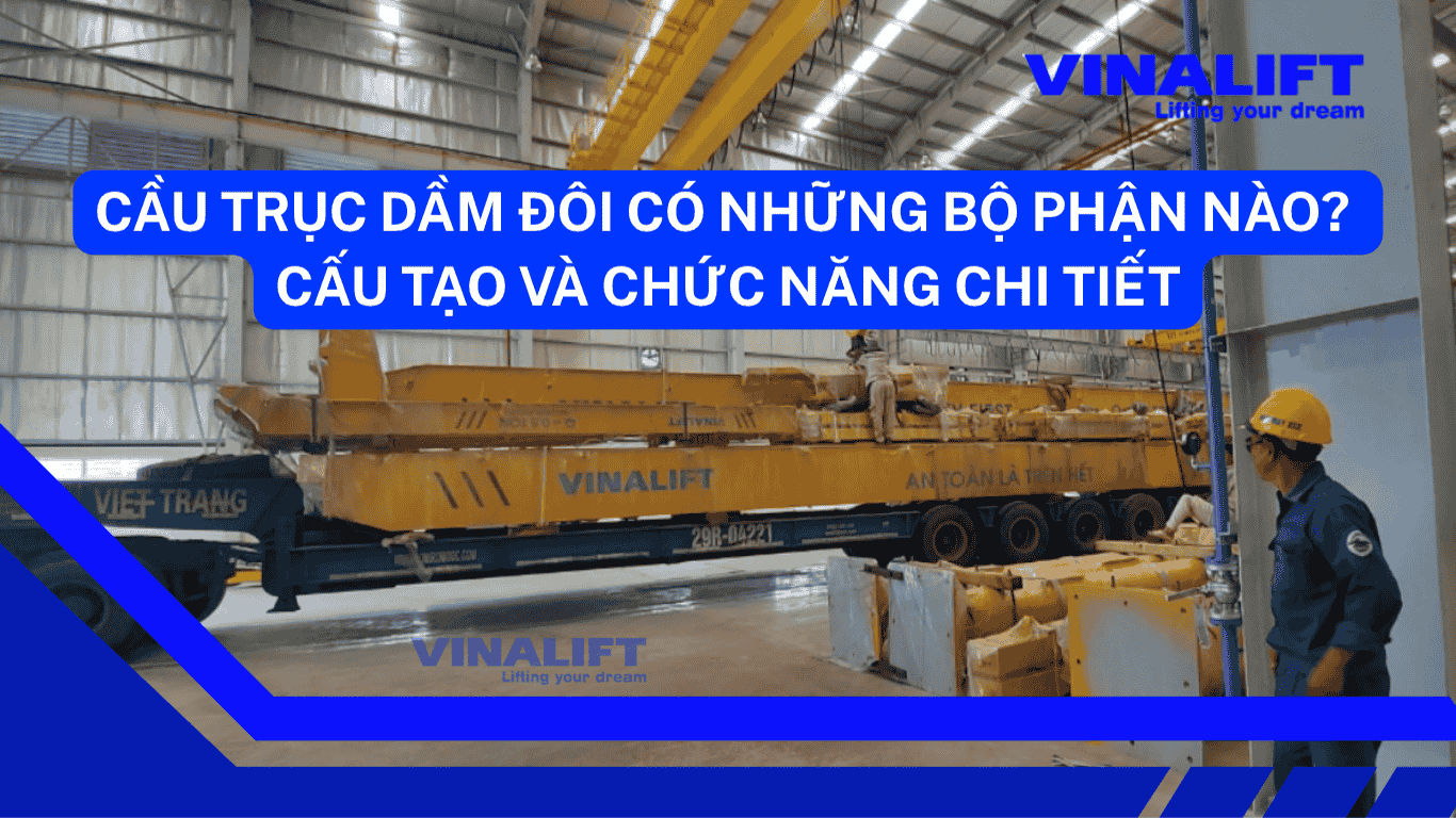 Đối với các chủ đầu tư nhà xưởng, kỹ sư cơ khí và chuyên gia tư vấn dự án công nghiệp nặng, việc nắm vững cấu tạo chi tiết của cầu trục dầm kép là yếu tố tiên quyết để đánh giá chất lượng, lập kế hoạch bảo dưỡng và đảm bảo an toàn vận hành. Khác với các thiết bị nâng hạ cơ bản, cầu trục dầm kép là một tổ hợp cơ điện phức tạp, đòi hỏi sự chính xác tuyệt đối trong từng chi tiết gia công. Dưới góc độ chuyên môn của VINALIFT, bài viết này sẽ “mổ xẻ” chi tiết cấu tạo, chức năng của từng linh kiện cấu thành nên hệ thống cầu trục dầm đôi, đồng thời phân tích các tiêu chuẩn kỹ thuật khắt khe đi kèm.