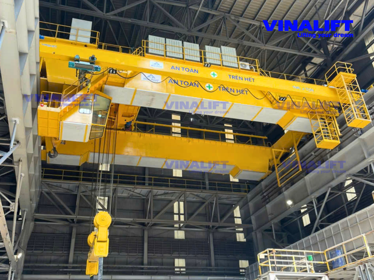 Là một trong những đơn vị tiên phong trong lĩnh vực thiết kế và chế tạo thiết bị nâng tại Việt Nam, VINALIFT tự hào là nhà cung cấp hệ thống cầu trục dầm đôi 80/20 tấn cho Khu liên hợp sản xuất gang thép Hòa Phát Dung Quất. Sản phẩm được thiết kế chuyên biệt để đáp ứng cường độ làm việc liên tục trong môi trường khắc nghiệt, khẳng định năng lực kỹ thuật và chất lượng chuẩn quốc tế của VINALIFT đối với ngành công nghiệp nặng.